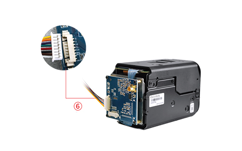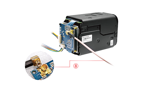 Step Ⅳ: 6. Physically connect the 8-pin terminal wire to the 3G-SDI interface board (as shown in Figure⑥ above). | Step Ⅴ: 7. Physically connect the power cable to the 3G-SDI interface board (as shown in Figure ⑦ above). | Step Ⅵ 8. Connect the MCX male connector to the 3G-SDI interface board (as shown in figure ⑧ above) |