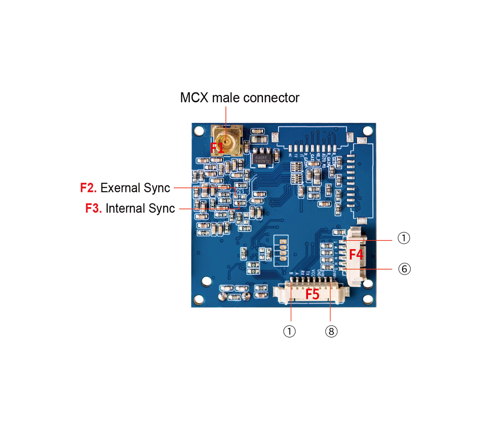 F6. Fuse: Provides 1.2A overcurrent protection to effectively protect the camera and prevent camera damage due to overcurrent.